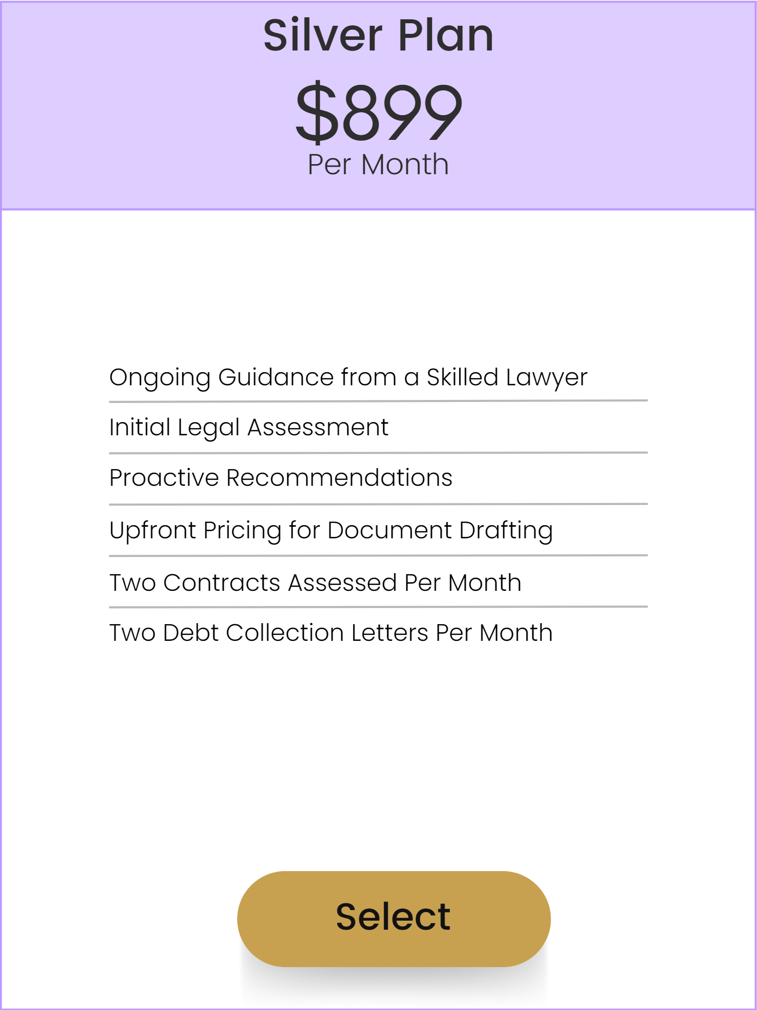 Whether you require assistance in contract reviews, corporate governance, or want to secure your business assets, our plan will clearly outline the services you need.